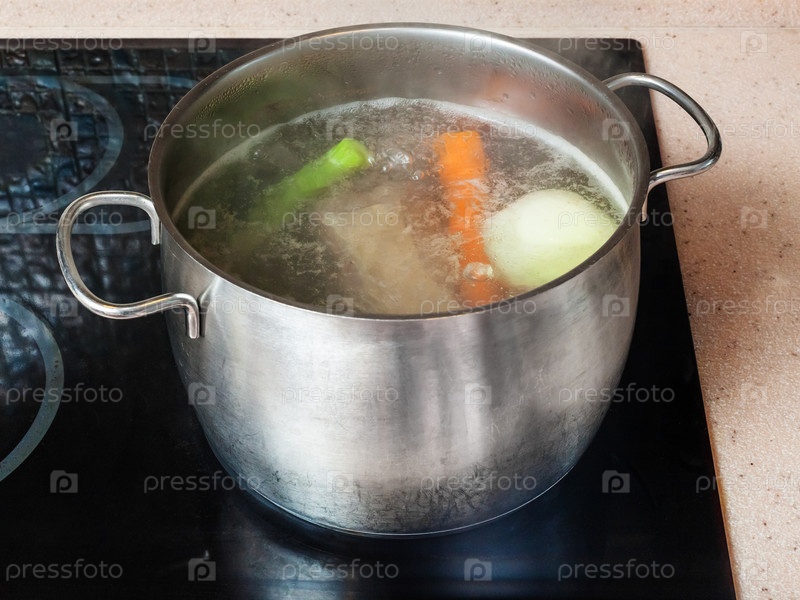 Кипящий бульон в кастрюле