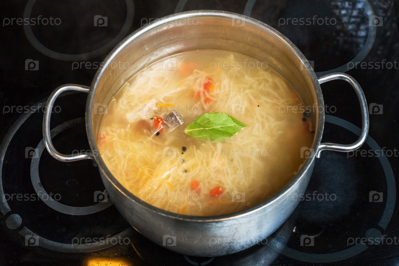 Суп из тушеной квашеной капусты в кастрюле