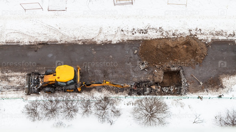 Экскаватор роет дорогу