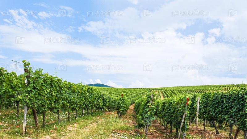 Синее небо над виноградником в Эльзасе