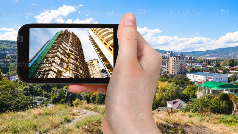 Турист фотографирует новые дома в Алуште