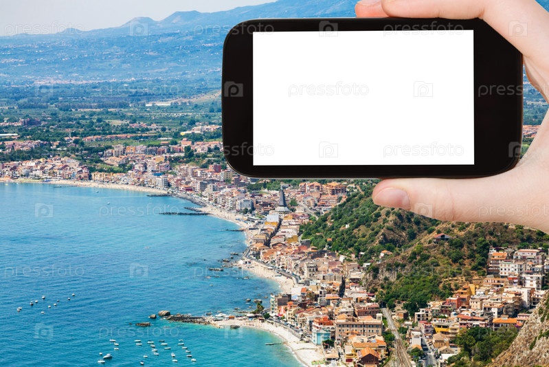 Турист фотографирует берег с Джардини Наксос