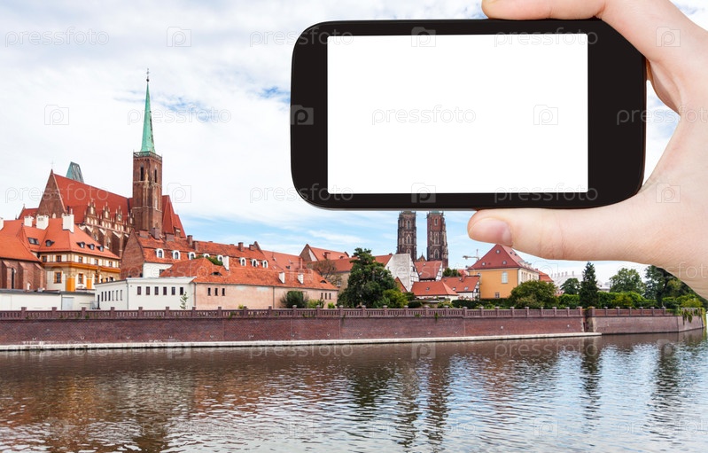 Турист фотографирует остров Тумски во Вроцлаве