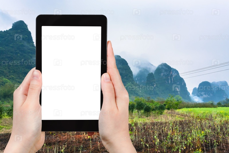 Турист фотографирует сады в Яншо Каунти