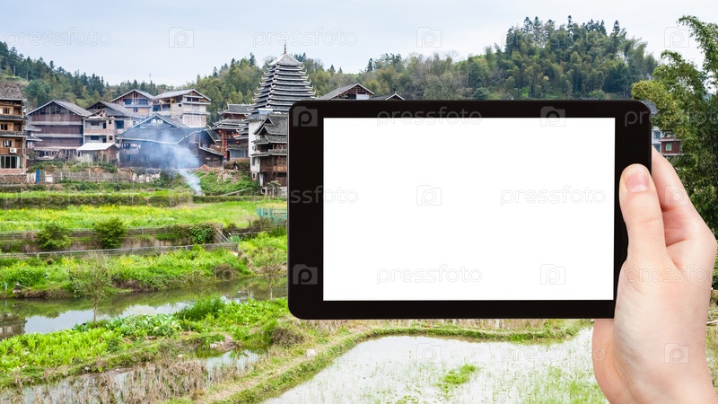Турист фотографирует рисовые поля