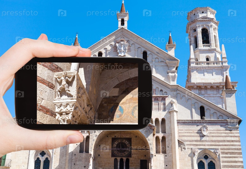 Турист фотографирует Собор Дуомо в городе Верона