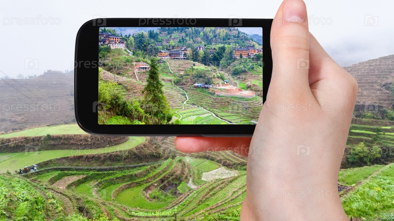 Турист фотографирует село Дажай в Китае