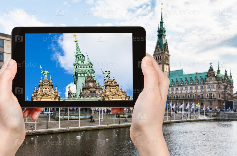 Турист фотографирует ратушу в Гамбурге