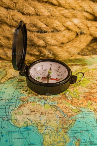 Компас на карте мира