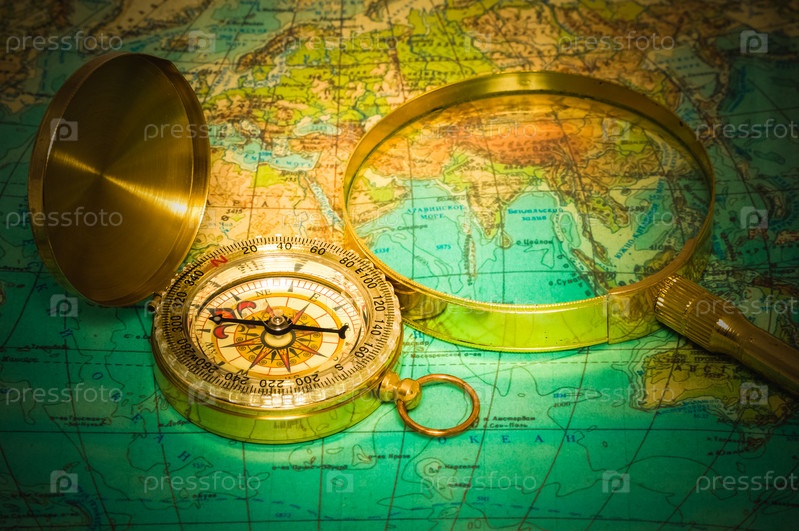 Компас и увеличительное стекло