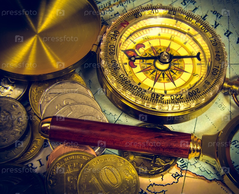 Компас и увеличительное стекло