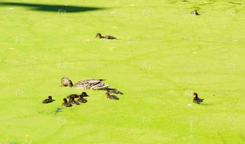 Дикая утка с утятами