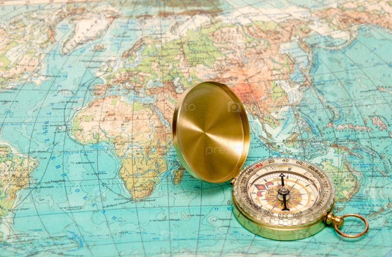 Современный компас и старая карта