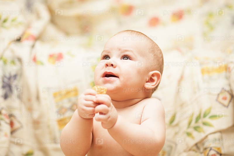 Маленький ребенок ест печенье