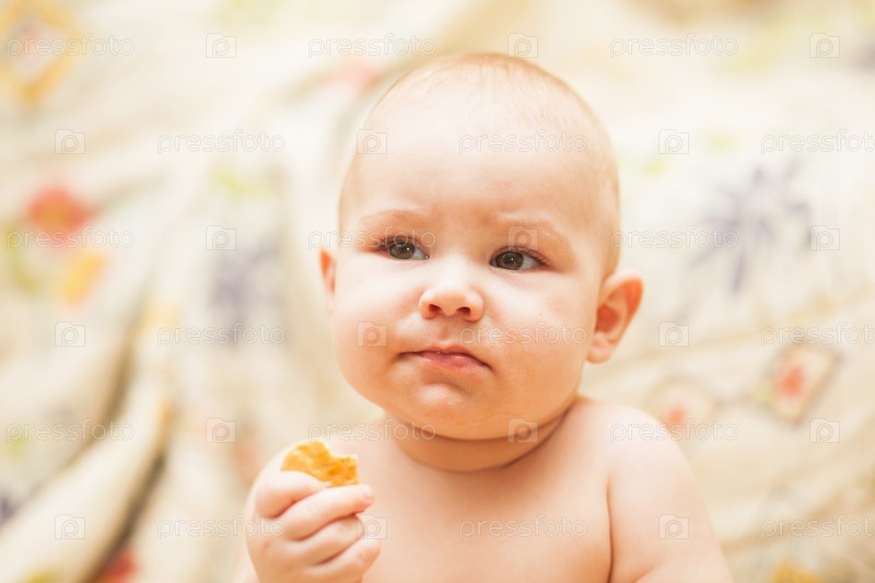 Маленький ребенок ест печенье