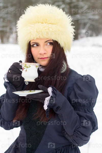 Красивая женщина пьет из чашки