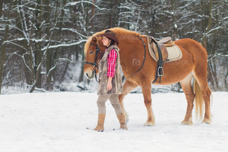 Женщина с лошадью на снегу