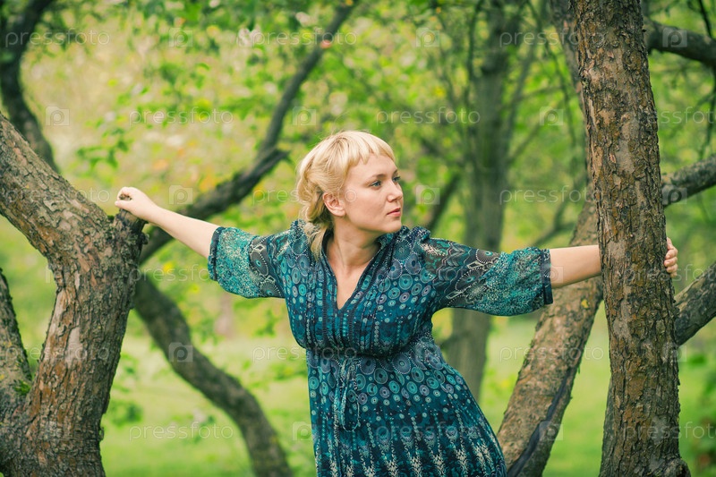 Девушка сидит на ветке