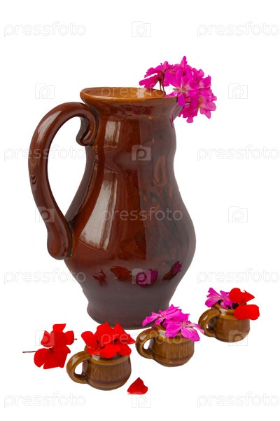 Кувшин с цветами на белом фоне