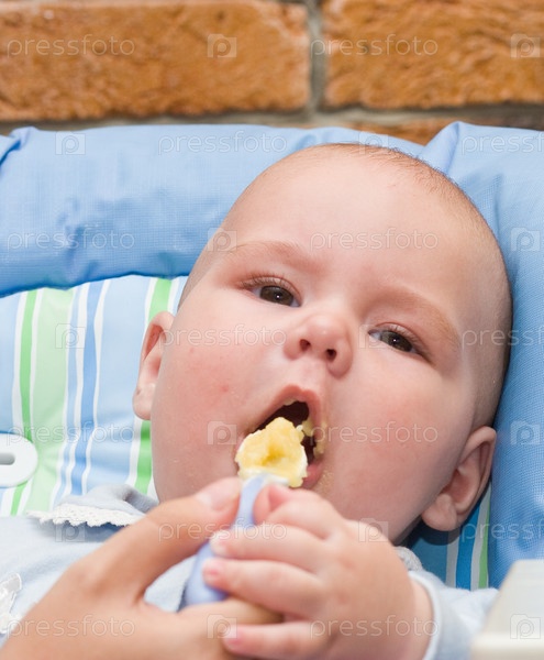 Маленький мальчик во время кормления