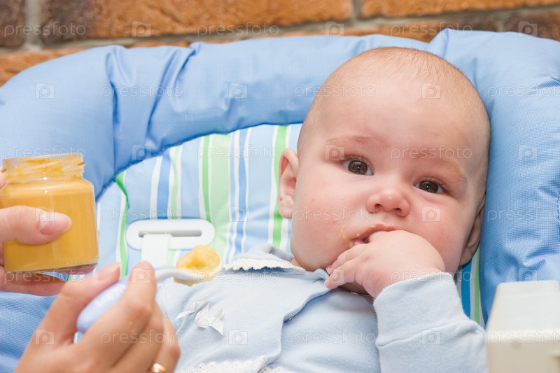 Маленький мальчик во время кормления