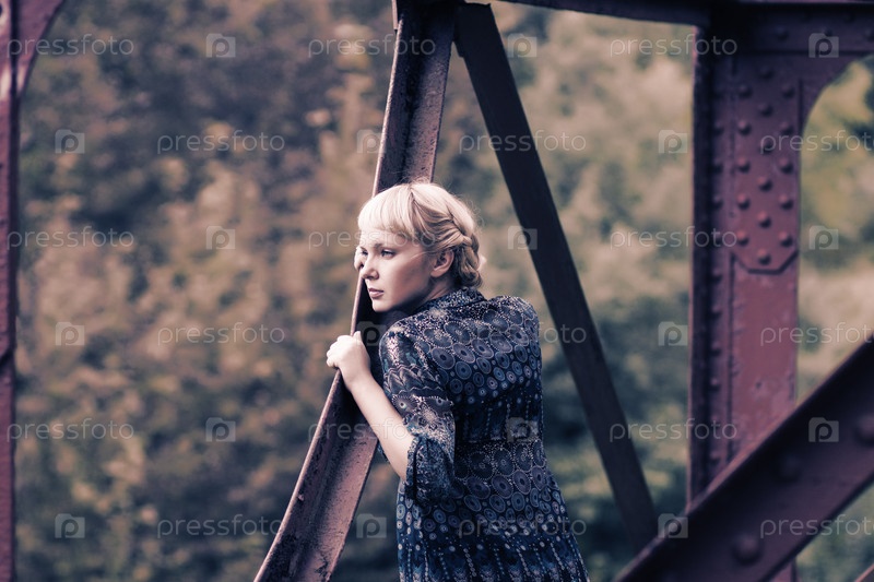 Молодая девушка стоит на мосту