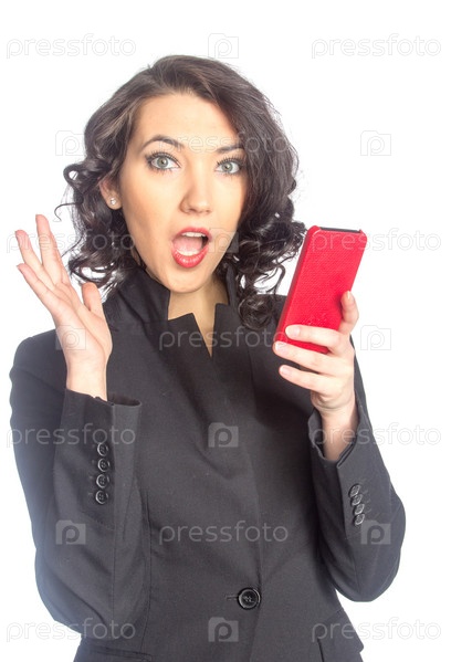 Удивленная женщина с мобильным телефоном