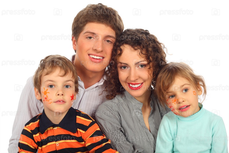 Семья из четырех человек на белом фоне
