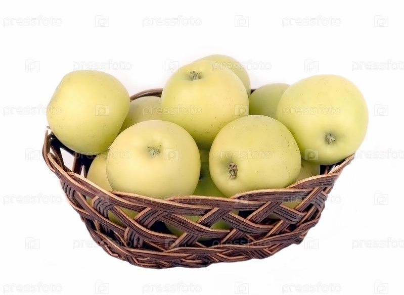 Зеленые яблоки в плетеной вазе
