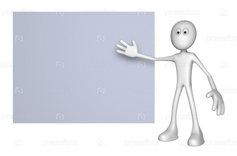 Белый человек указывает на пустой плакат - 3d иллюстрации