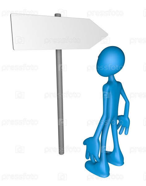 Синий человек и указатель - 3d иллюстрация