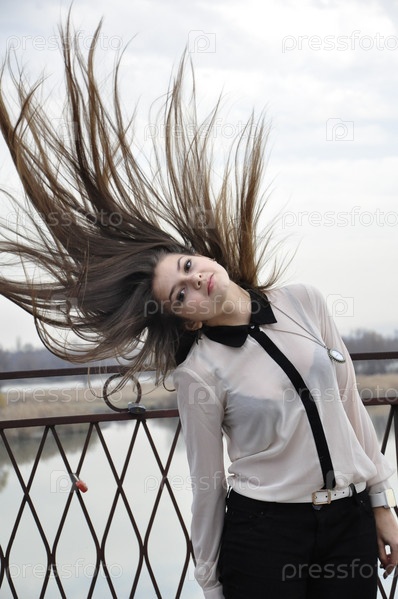Девушка с развевающимися волосами