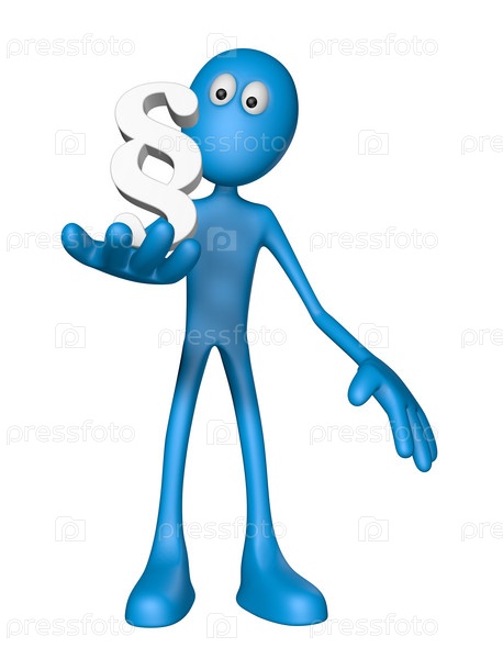 Синий человек держит в руках знак параграфа - 3d иллюстрация