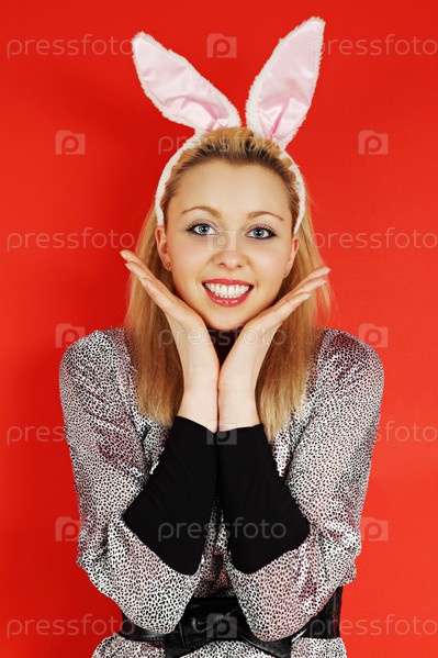 Портрет симпатичной блондинки с заячьими ушками