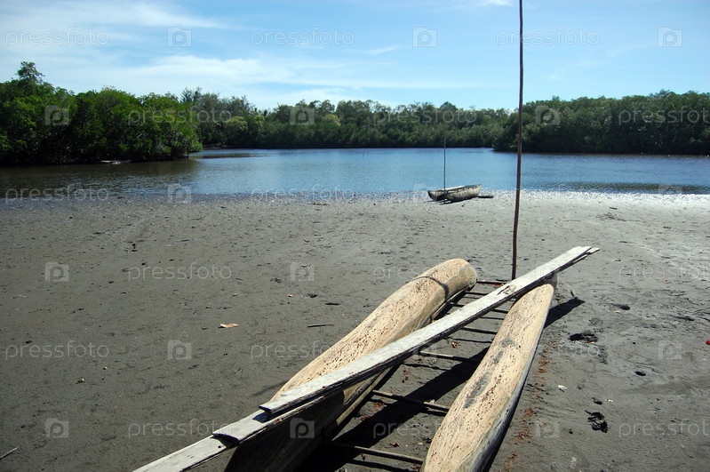 Каноэ на песчаном пляже на берегу реки