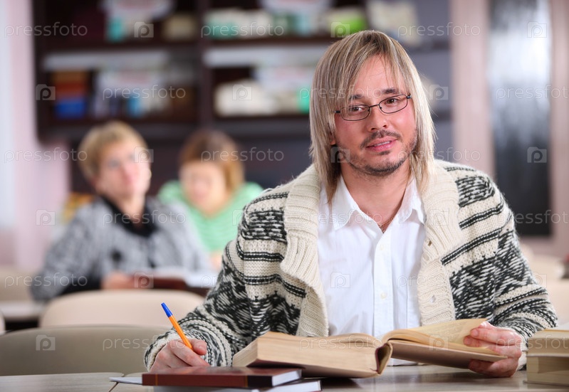 Молодой человек в библиотеке