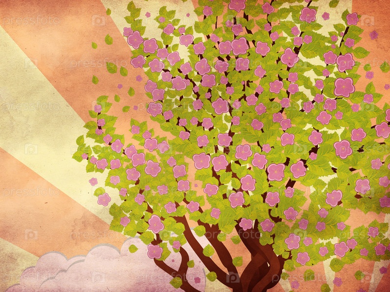 Сакура на фоне лучей гранж