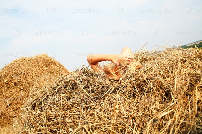 Красивая молодая женщина в стоге сена