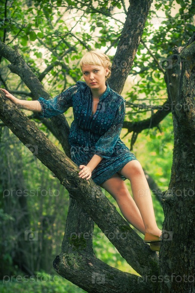 Девушка сидит на ветке