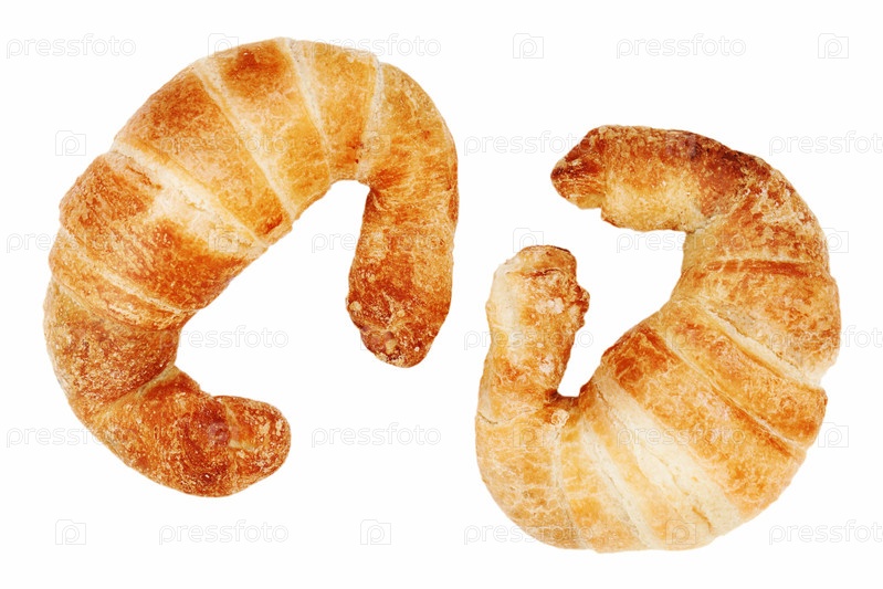 Свежие и вкусные круассаны, изолированные на белом фоне