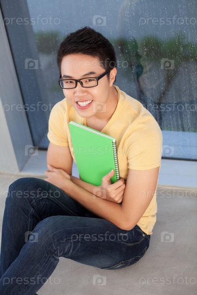 Студент сидит на полу
