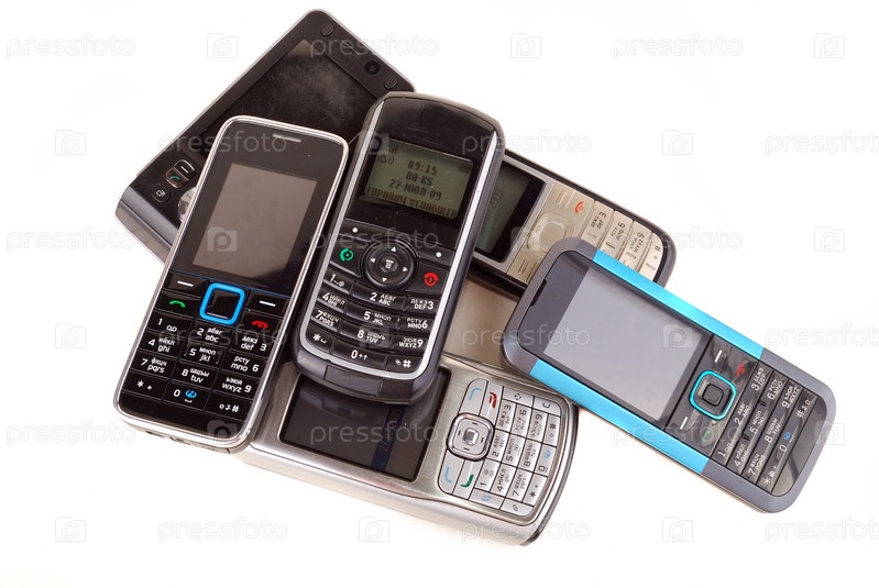 Несколько сотовых телефонов на белом фоне