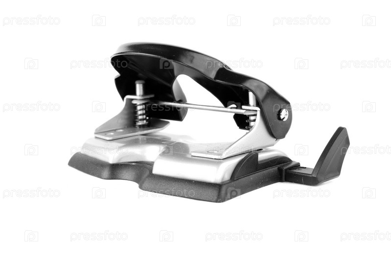 Дырокол крупным планом на белом фоне