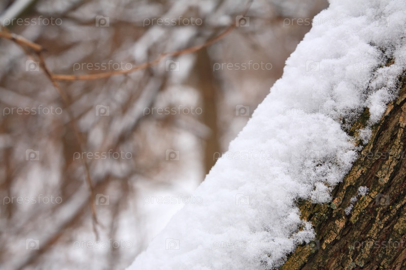 Сугроб на стволе дерева