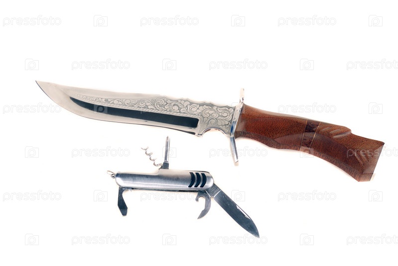 Перочинный и большой ножи на белом фоне