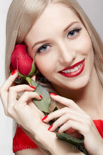Портрет блондинки с розой