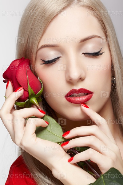 Портрет блондинки с розой