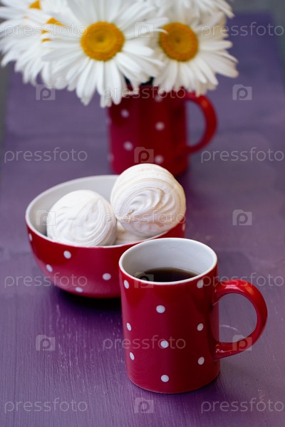 Чашка в красный горошек с чаем