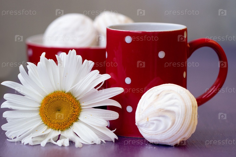 Чашка в красный горошек с чаем