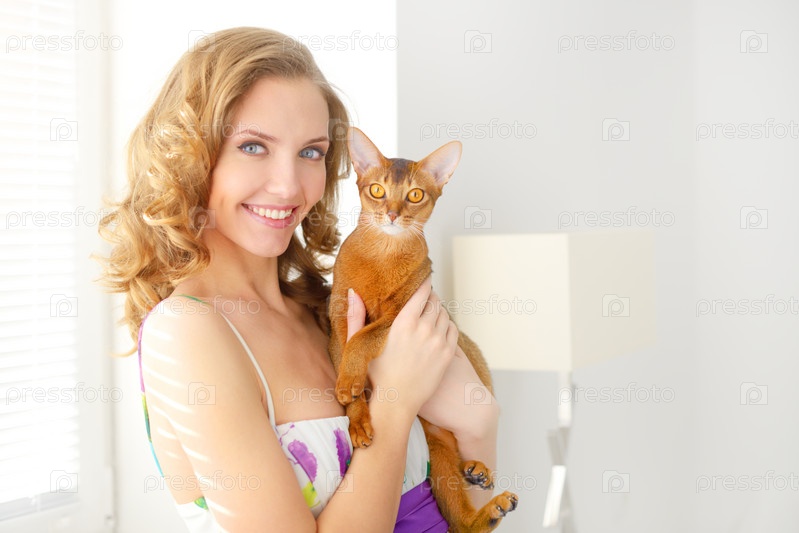 Девушка с абиссинской кошкой